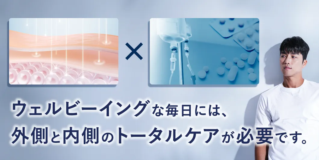 美容内科は、お悩み改善効果の高い栄養素や薬剤を積極的に取り込んで身体の中からケアする治療です。 そのため、美容施術に、点滴や内服薬治療を加えることで、得たい効果を高め、さらにダウンタイムを軽減できます。 抗酸化作用やコラーゲン生成促進作用をもたらす点滴や内服を使用すれば、創傷治癒が早まるような効果も見込めます。 また、痩身効果高い施術に加え、痩身効果をサポートする美容内科治療で相乗効果を発揮します。